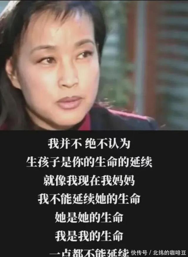 很早以前刘晓庆便曾直言不讳地说过: “我并不认为,也绝不认为,生孩子是你的生命的延续,就像我妈妈,我不能延续她的生命,她是她的生命,我是我的生命,一点都不能延续,所以我认为这个观点是非常错误的,还有一点就是生孩子是为了养儿防老,我觉得在当今社会不可能。”